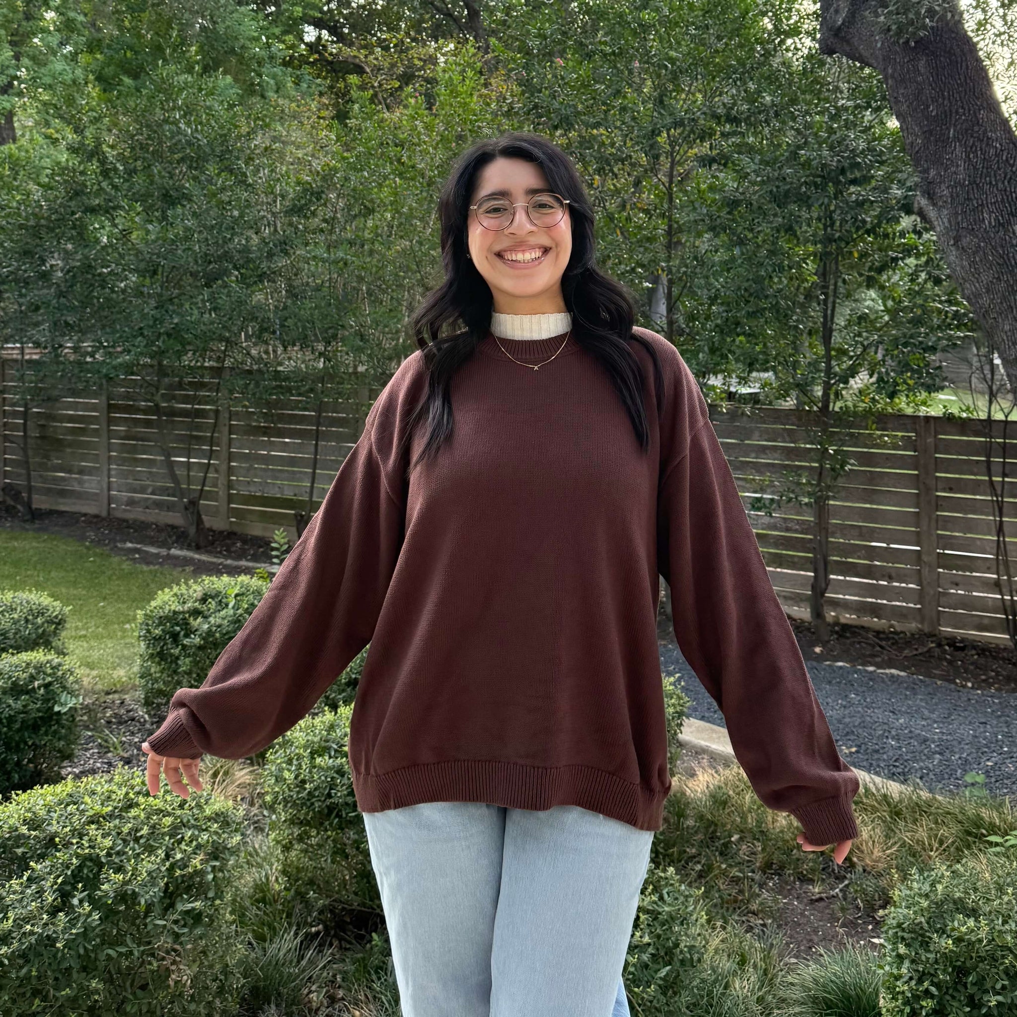 This sweater is meant to be oversized, if you prefer a closer fit feel free to size down!