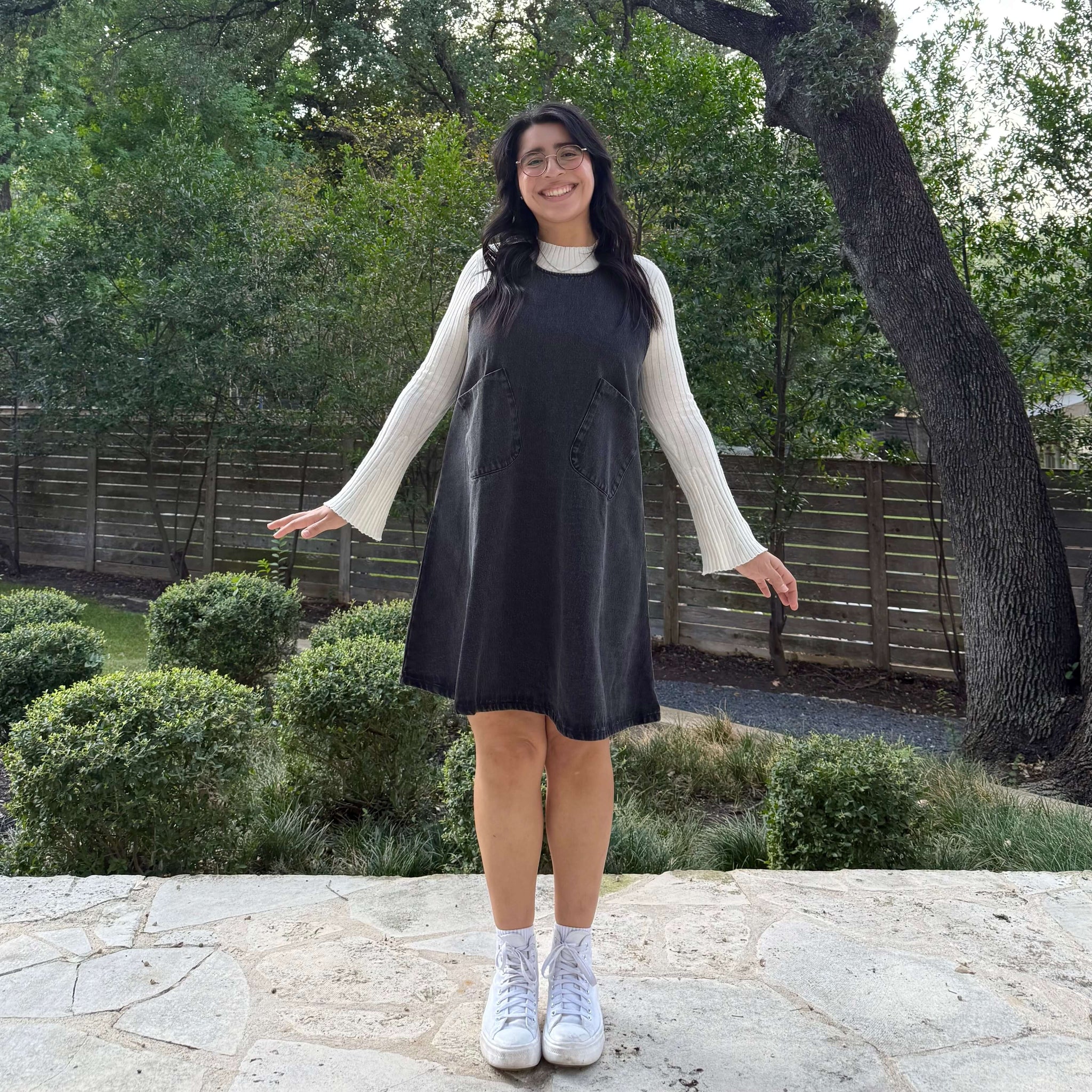 This dress is meant to have a loose fit throughout the body, perfect for layering :)