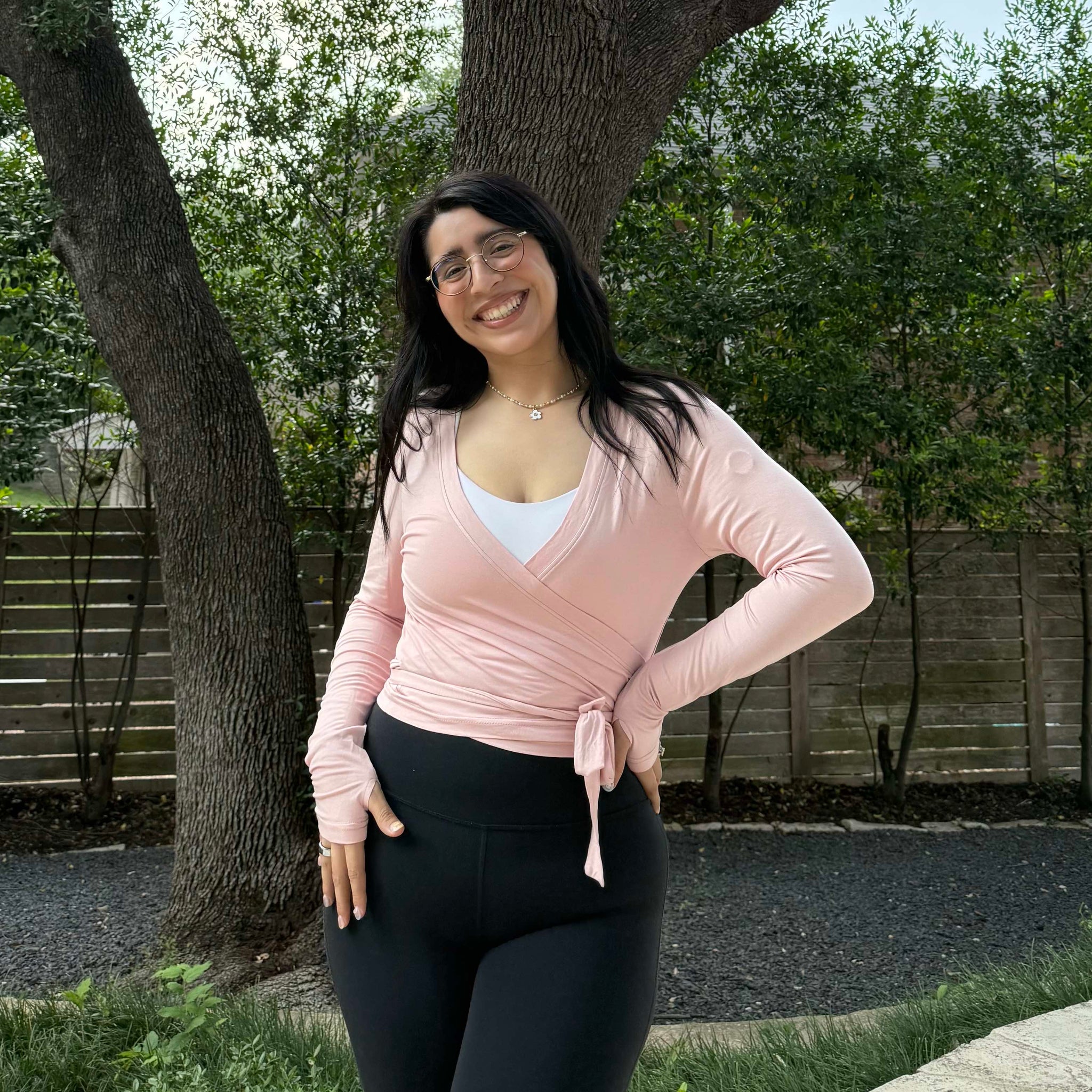 • The perfect wrap top for workouts, lounging, and any time you need pilates princess vibes