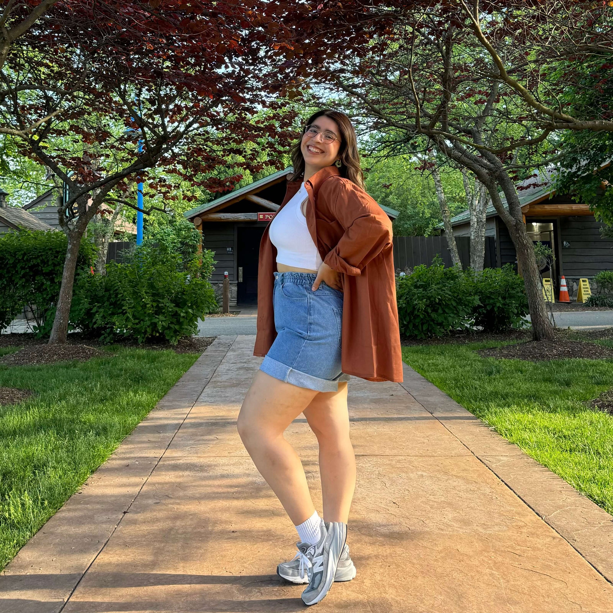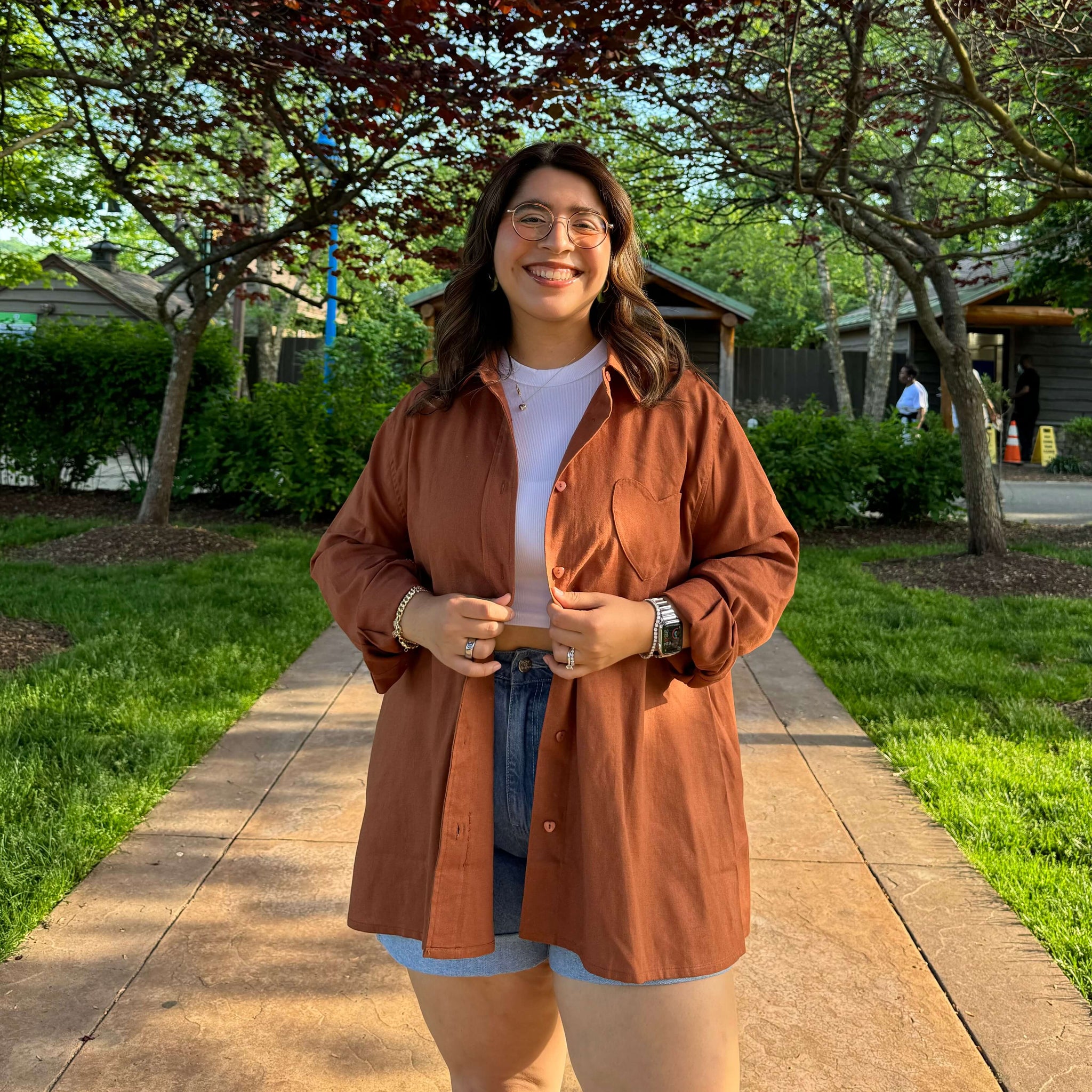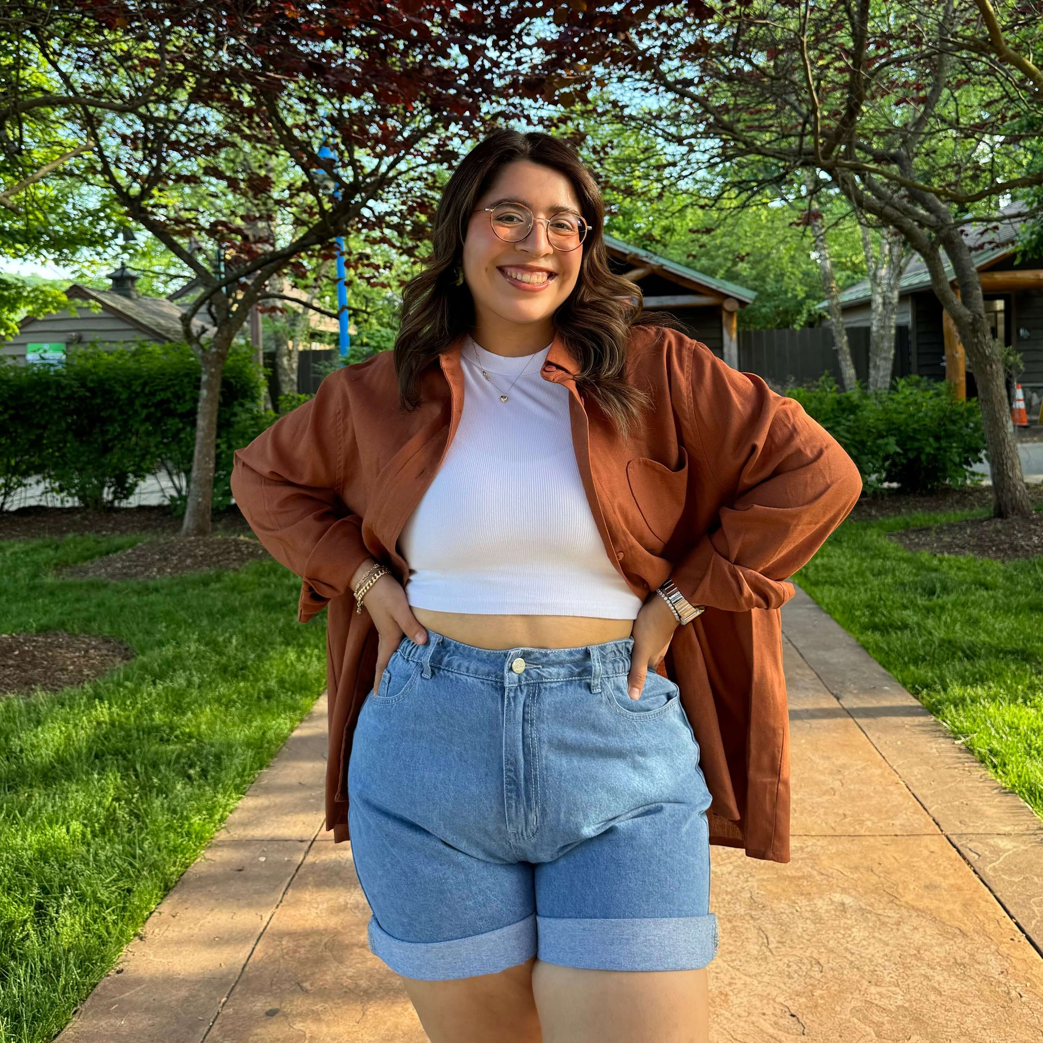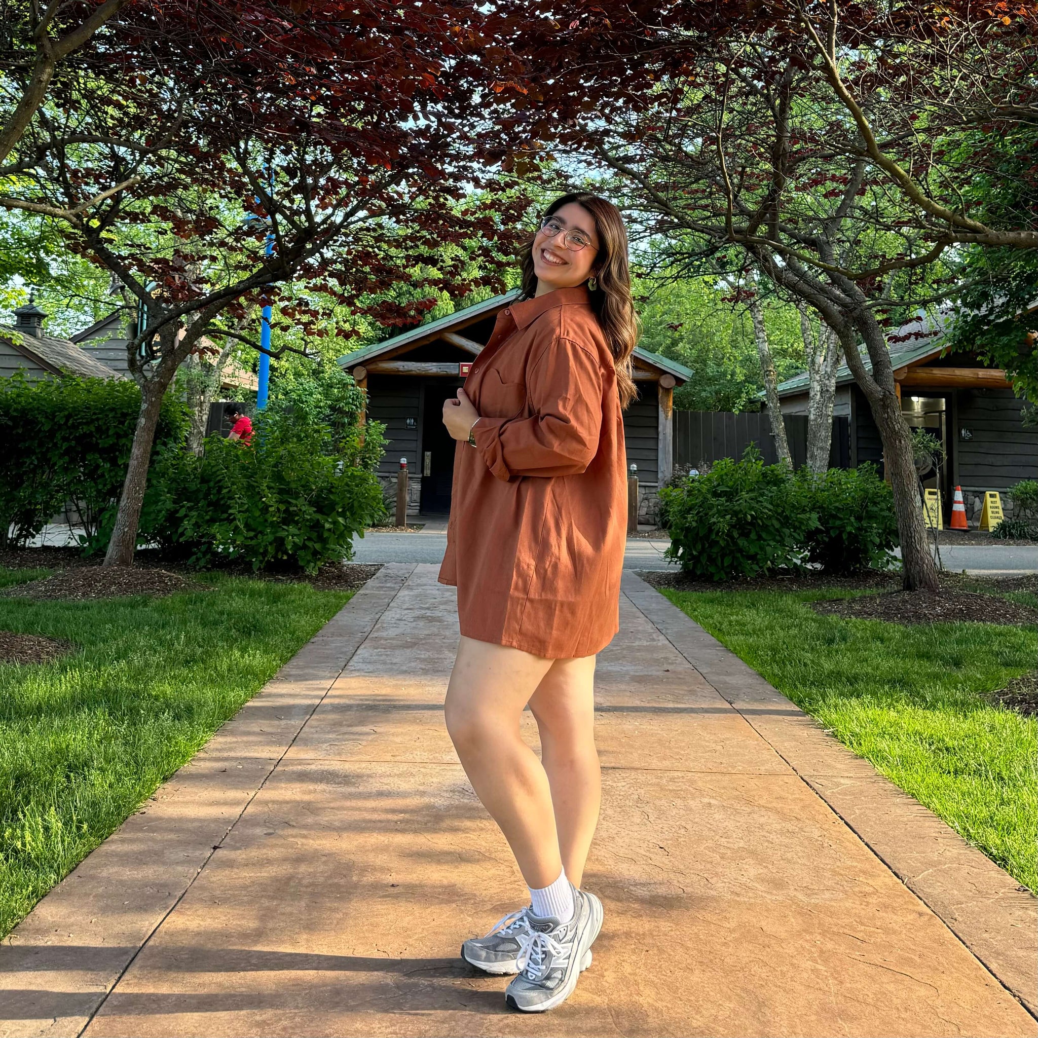We recommend following your bust measurement to determine size. This button-up is meant to be slightly fitted at the bust & slightly loose around the hips :)