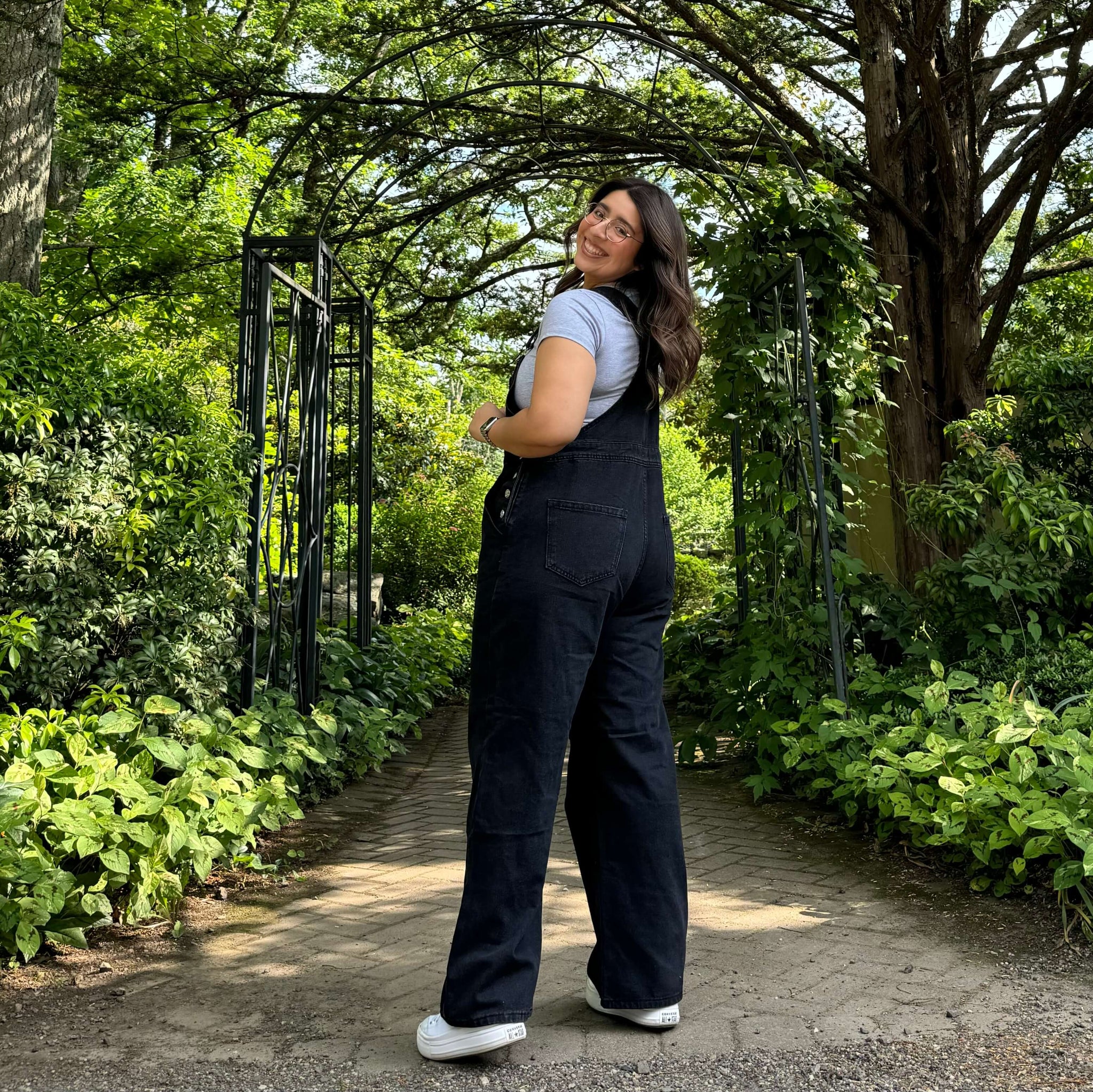 The overalls have very minimal to no stretch so please take this into consideration when choosing your size!
