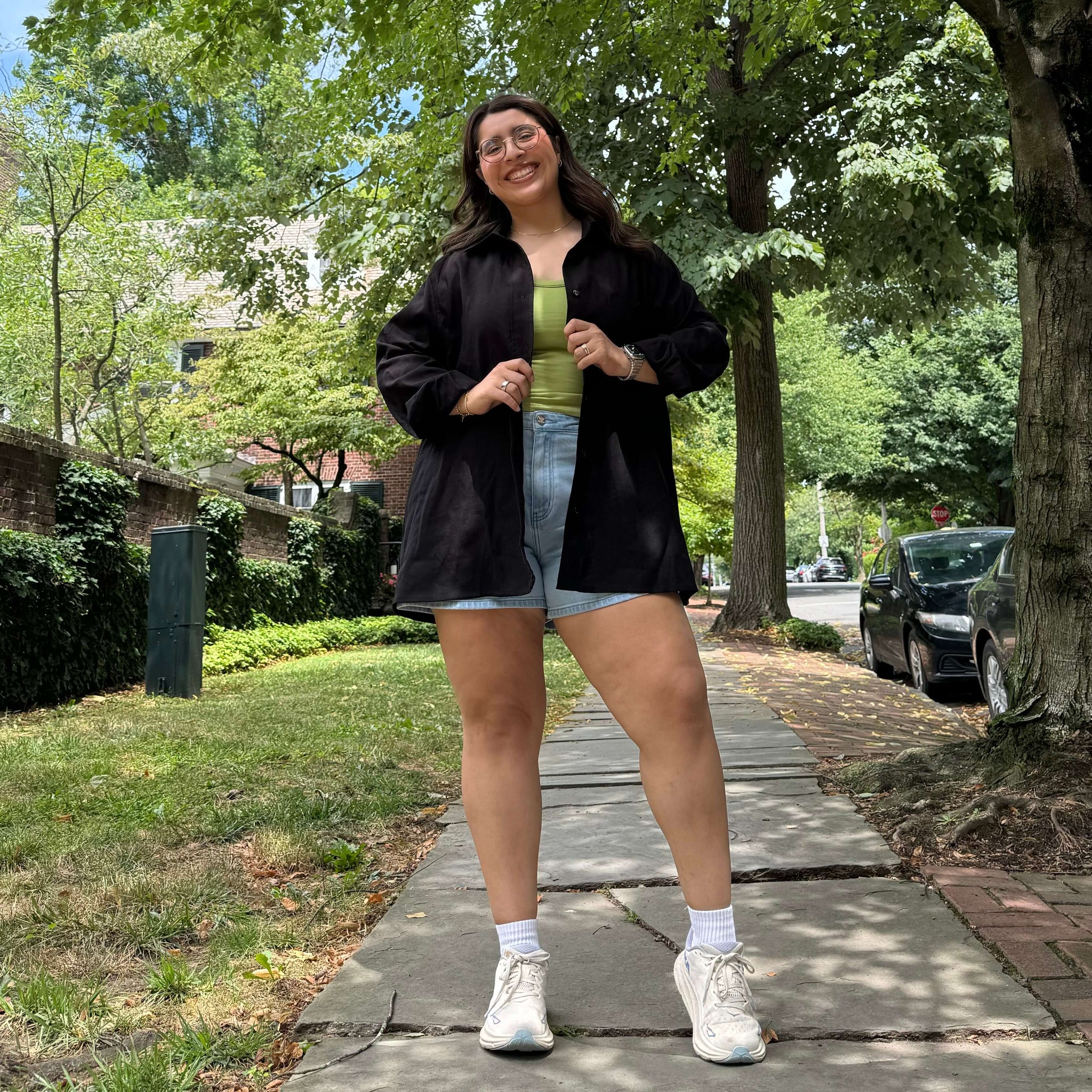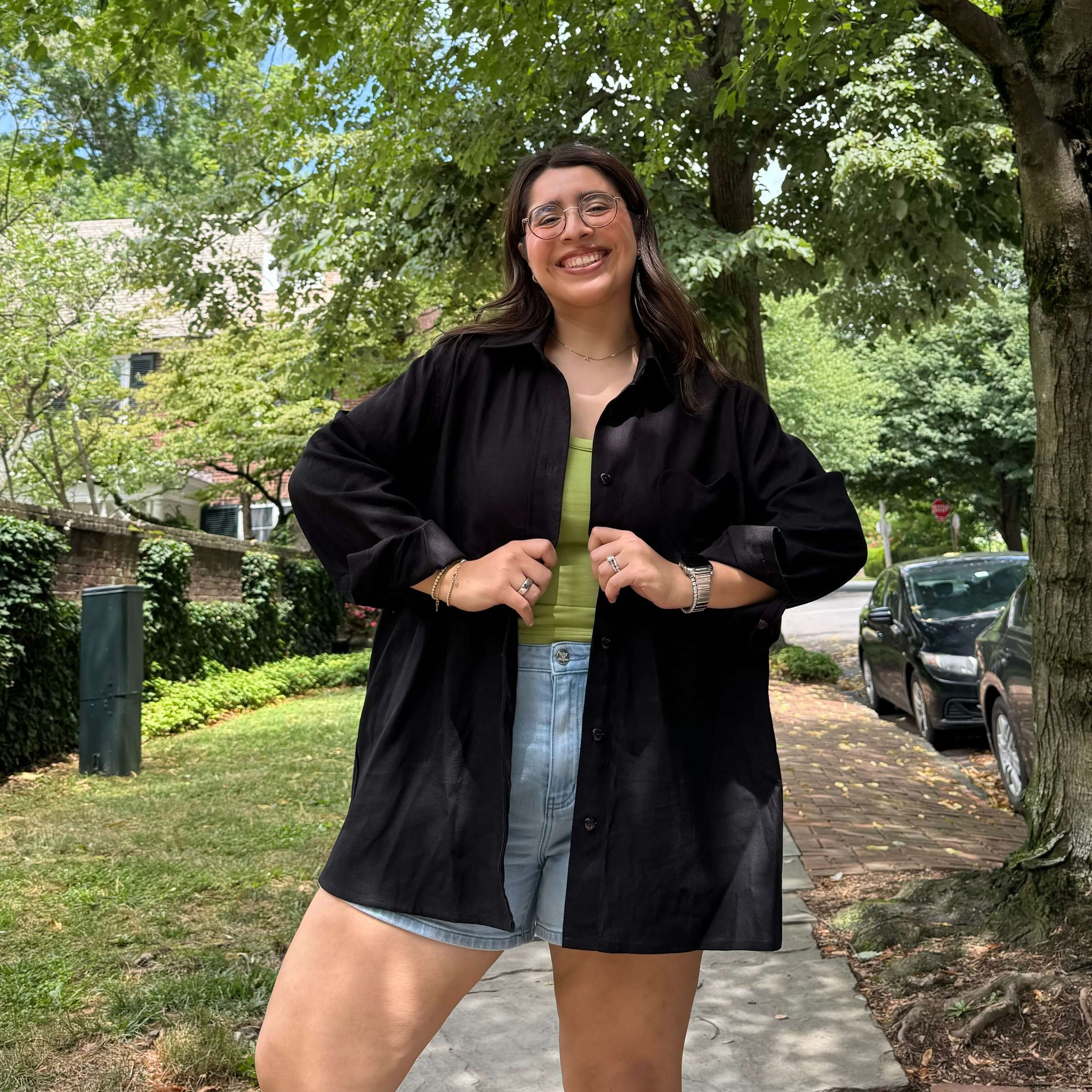 We recommend following your bust measurement to determine size. This button-up is meant to be slightly fitted at the bust & slightly loose around the hips :)